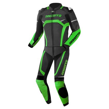Dit leren Bogotto racepak is gemaakt van Polyester, Rundleder, Textiel wat voor optimale bescherming zorgt. Dit type leer Dit 2-delige motorpak is uitgerust met CE Level 1 elleboog, CE Level 1 schouder, CE Level 1 knie beschermers en is voorbereid op aanvullende Rug bescherming. Deze hoogwaardige bescherming is erop gemaakt om blessures te verminderen wanneer het een keer niet volgens plan gaat. Maak je dus geen zorgen, want met dit gecertificeerde pak ben je overal klaar voor!