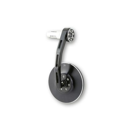 CNC-gefreesde stuurspiegel met een ronde kop van zwart geanodiseerd aluminium. Gecombineerd met gepolijste facetten staat dit model voor een elegant, stijlvol design. Geschikt voor sturen met een binnendiameter van 12 tot 22 mm. Dus voor de meeste 7/8 inch en 1 inch aluminium of stalen sturen. Ideaal zicht door een gebogen glas met een lichte tint. De spiegel is zowel links als rechts te gebruiken.