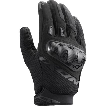 De Ixon Rise TX zijn motorhandschoenen voor rijders die waarde hechten aan comfort, bewegingsvrijheid en betrouwbare grip bij het rijden in stedelijke gebieden en op roadsters. Het elastische 4-way stretch-nylon zorgt voor een comfortabele pasvorm en hoge flexibiliteit, terwijl de polyurethaan suède palm een stevige grip op het stuur biedt. De voorgevormde constructie vermindert handvermoeidheid bij langere ritten. Een geïntegreerde knokkelschaal met koolstofachtige stijl en verstevigingen op de handpalm met rubberen schuifstukken verhogen de weerstand tegen contact met de grond. De korte, naadloze manchet met haak-en-lus sluiting zorgt voor een stevige pasvorm. Dankzij de touchscreen-compatibele wijsvinger kunnen schermen zonder problemen worden bediend.