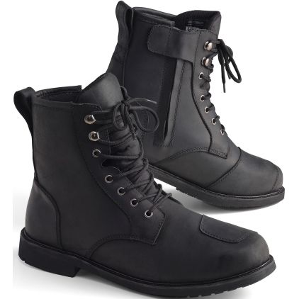 The Wolter II is the second generation of urban leather motorcycle boots and combines a comfortable fit with robust workmanship and reliable weather protection. High-quality cowhide leather ensures stability and comfort, while the side zipper makes them particularly easy to put on. With an integrated Hipora® membrane (5k/5k), your feet are reliably protected from wind and rain. The shift pad, toe, and ankle reinforcements guarantee additional safety, and the practical loop makes them easy to put on. A versatile boot for everyday use - comfortable, safe, and stylish, both on the motorcycle and in the city.