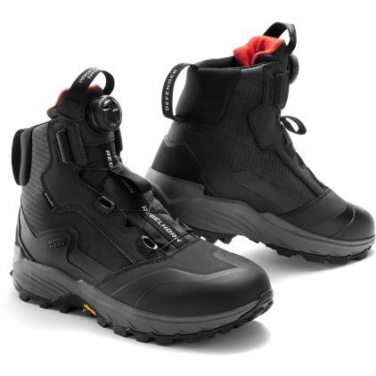 De Rebelhorn DEFENDER motorlaarzen zijn veelzijdige toerlaarzen die ontworpen zijn voor rijders die comfort, bescherming en weersomstandigheden nodig hebben op lange reizen. De duurzame combinatie van microvezel, cordura en ripstop zorgt voor uitstekende stevigheid, terwijl het waterdichte en ademende Sympatex-membraan de voeten droog houdt onder veranderende omstandigheden. Met het precieze ATOP quick-lace systeem en een Vibram-zool met hoge grip levert de DEFENDER betrouwbare prestaties zowel op als naast de motor.