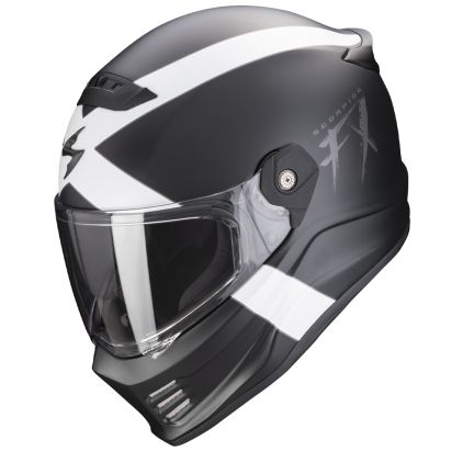 De Covert FX van ScorpionEXO® is meer dan een motorhelm; het is een combinatie van stijl en geavanceerde technologie. Deze helm, voortkomend uit de befaamde Covert/Combat serie, brengt deze erfenis naar een hoger niveau met verbeterde eigenschappen en ontwerp. Hij is gemaakt van geavanceerde materialen zoals glasvezel, aramide en polyresinvezels, wat resulteert in een lichte maar uiterst stevige helm. De aerodynamisch geoptimaliseerde vorm vermindert turbulentie en verhoogt de stabiliteit bij hoge snelheden. Dit maakt het een uitstekende keuze voor zowel stadsritten als lange tochten. Bovendien zorgen de geïntegreerde speakerpockets en het dubbele viziersysteem (inclusief een gratis Dark Smoke vizier) voor gemak en veelzijdigheid tijdens elke rit.