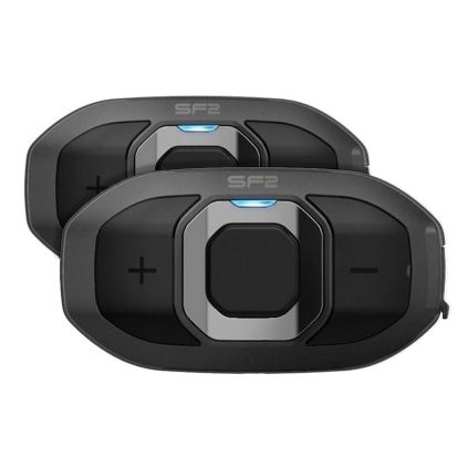 Als je op zoek bent naar een communicatiesysteem voor twee personen, dan is de SF2 Bluetooth-headset misschien iets voor jou. De SF2 biedt een tweerichtings-intercomsysteem met een bereik tot 800m in open terrein. De SF2 heeft ook smartphone-connectiviteit waarmee je muziek kunt streamen en telefoongesprekken kunt voeren. Door de audio-overlay is het mogelijk om naar je favoriete muziek te luisteren terwijl je naar GPS-aanwijzingen luistert. De SF2 is uitgerust met HD-speakers die je rit naar een hoger niveau tillen met helderder geluidskwaliteit. Maar ook normale speakers zijn inbegrepen; deze speakers zijn kleiner van formaat en kunnen een comfortabele keuze zijn voor bepaalde rijders.
