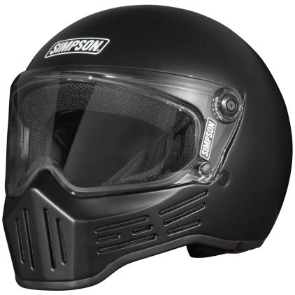 De klassieke Simpson M30 met Europese certificering: De agressieve silhouet van de jaren zeventig is volledig intact gebleven. De kenmerkende kinsectie en smalle uitsparing van het vizier zorgen voor de klassieke bandietenuitstraling. Dankzij de hergoedkeuring volgens ECE 22.06 voldoet de helm aan de strengste testcriteria op het gebied van schokabsorptie, penetratiebestendigheid en rotatiekrachten.